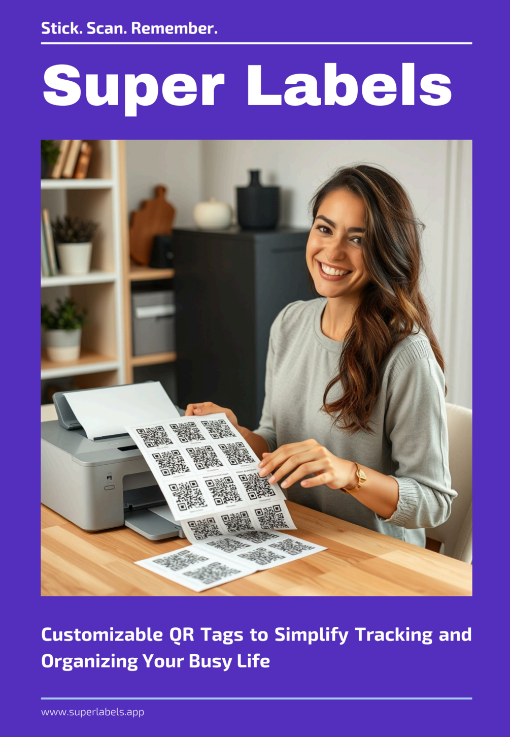 Get instant access to downloadable, 100 customizable QR codes to organize and simplify your life- download the free app now at superlabels.app!